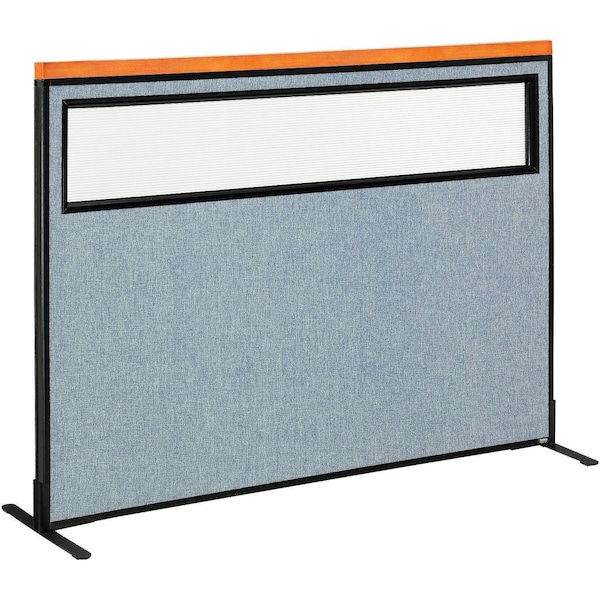 Interion Deluxe Freestanding Office Partition Panel w/Partial Window 60-1/4"W x 43-1/2"H Blue