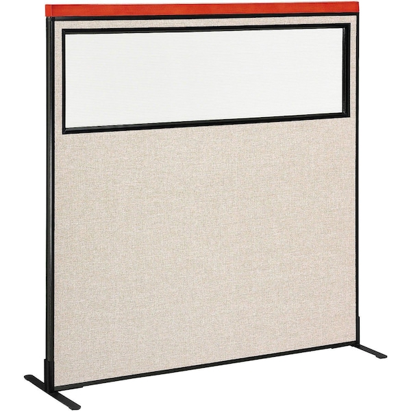 Interion Deluxe Freestanding Office Partition Panel w/Partial Window 60-1/4"W x 61-1/2"H Tan