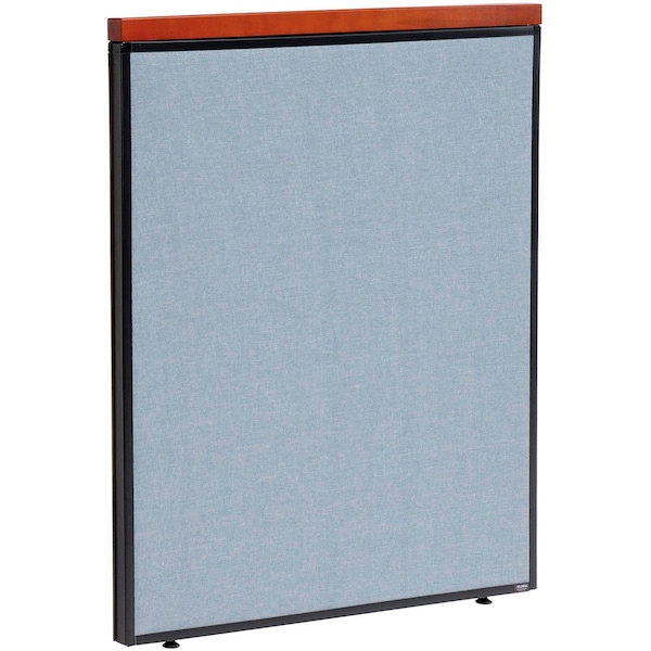 Interion By Global Industrial deluxe partition panels feature a wood accent at the top of the panel. Measuring 36-1/4 inches, wood cap attaches to top of partition, trimming panels with a Cherry finish. Cap measures 1-1/2"H x 1-3/4"D. Office partition panels can be used to wrap around existing desks or new office furniture to create private office spaces, cubicles, reception stations and call centers for any office environment. Room partition panel is flame retardant to meet the California 117 flammability standard. 1-3/4" thick fabric upholstered panel features an interior engineered wood (MDF) frame and honeycomb core covered with heavy tackable liner for structural strength and support. Panel trim is finished with self-extinguishing extruded polymer that offers optimum safety and rigidity. Partition includes adjustable leveling feet that are ideal for uneven surfaces. Purchase Steel Connectors to join multiple partitions and create various cubicle configurations (sold separately) The wood top cap is a non-weight bearing accent piece for decorative purpose only. Do not hook or hang any item on top of the panel for safety measures.