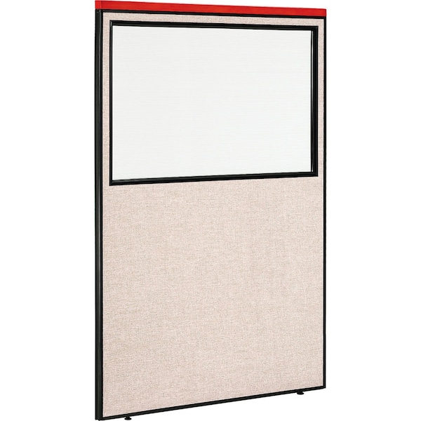 Interion Deluxe Office Partition Panel with Partial Window, 48-1/4"W x 73-1/2"H, Tan