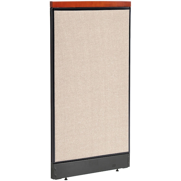 Interion By Global Industrial 24"W Partition Panels are a perfect endcap to help partially close off your cubicle. Deluxe partition panels feature a wood accent at the top of the panel. Measuring 24-1/4 inches, wood cap attaches to top of partition, trimming panels with a Cherry finish. Cap measures 1-1/2" high and 1-3/4" deep. . Raceway partitions create private offices and cubicles. Raceways provide convenient access for data cables & electrical wiring to keep office spaces clean and clear of visible wires. Can be connected together with Electric and Non-Electric panels to only place power where you need it. Pass-Through Panels include raceways with electric cabling to connect adjoining Electric panel raceways. Panel is flame retardant to meet California 117 flammability standard. 1-3/4" thick fabric upholstered panels feature an interior engineered wood (MDF) frame and honeycomb core covered with heavy tackable liner for structural strength. 4"H Black powder coated steel raceways include cable management openings for phone & data cables. Removable raceway covers allow easy wiring access. Includes adjustable leveling feet for uneven surfaces.