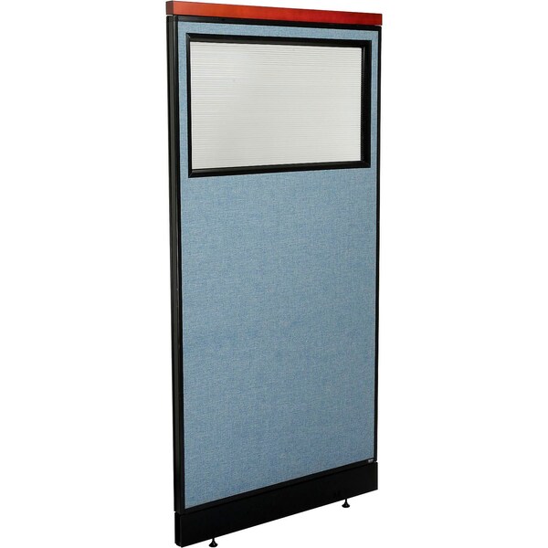 Interion Deluxe Office Partition Panel w/Partial Window and Pass-Thru Cable 36-1/4Wx101-1/2H BLU