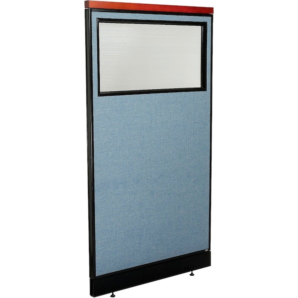 Interion Deluxe Office Partition Panel w/Partial Window and Pass-Thru Cable 36-1/4Wx65-1/2H BLU