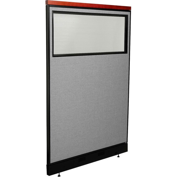 Interion Deluxe Office Partition Panel w/Partial Window and Pass-Thru Cable 48-1/4Wx101-1/2H GRY