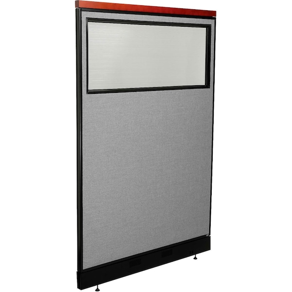Interion Deluxe Office Partition Panel w/Partial Window and Pass-Thru Cable 48-1/4Wx77-1/2H GRY