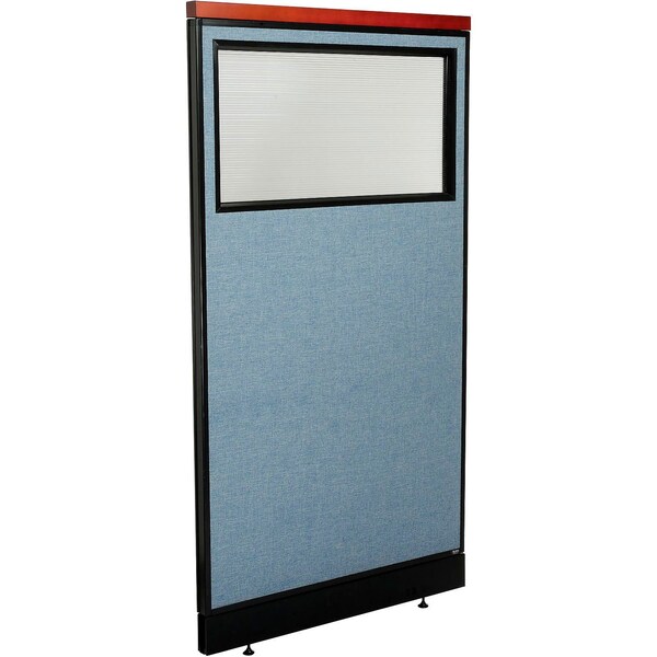 Interion Deluxe Office Partition Panel w/Partial Window and Raceway 36-1/4"W x 65-1/2"H Blue
