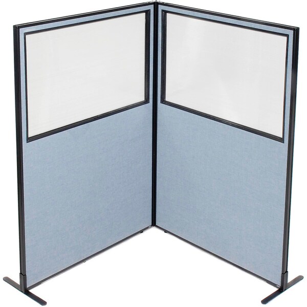 Interion Freestanding 2-Panel Corner Room Divider w/Partial Window 48-1/4"W x 72"H Panels Blue