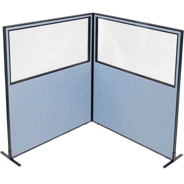 Interion Freestanding 2-Panel Corner Room Divider w/Partial Window 60-1/4"W x 72"H Panels Blue