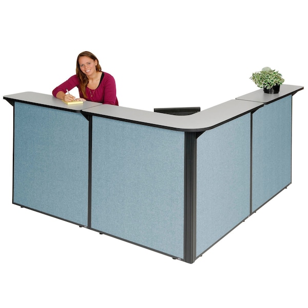 Interion L-Shaped Reception Station, 80"W x 80"D x 44"H, Gray Counter, Blue Panel