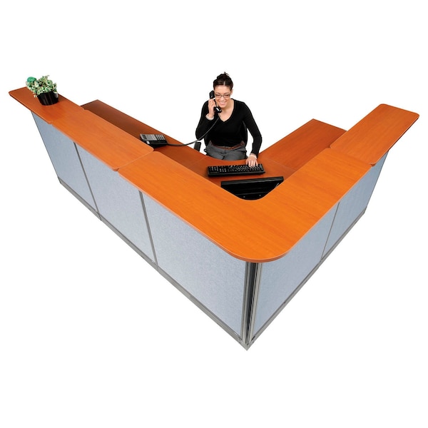 Interion L-Shaped Reception Station w/Raceway 116"W x 80"D x 46"H Cherry Counter Blue Panel