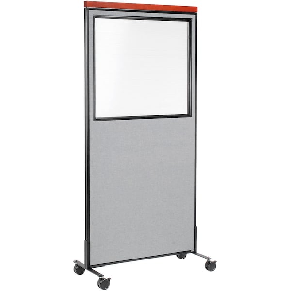 Interion Mobile Deluxe Office Partition Panel with Partial Window, 36-1/4"W x 76-1/2"H, Gray