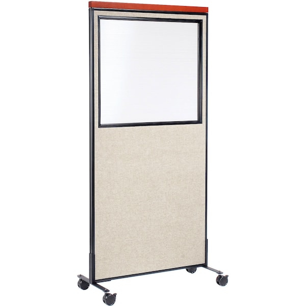 Interion Mobile Deluxe Office Partition Panel with Partial Window, 36-1/4"W x 76-1/2"H, Tan