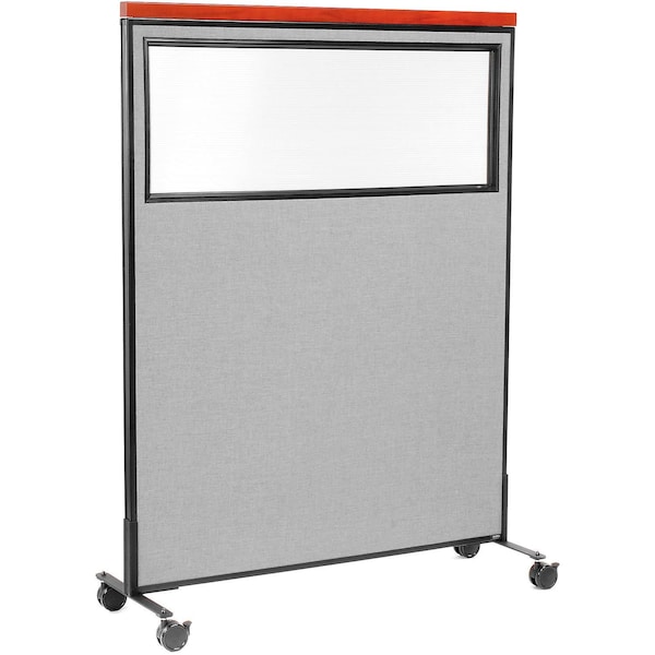 Interion Mobile Deluxe Office Partition Panel with Partial Window, 48-1/4"W x 64-1/2"H, Gray