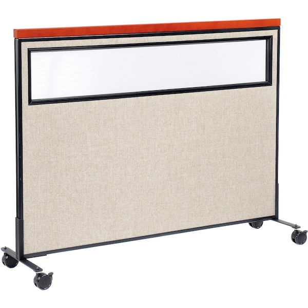 Interion Mobile Deluxe Office Partition Panel with Partial Window, 60-1/4"W x 46-1/2"H, Tan