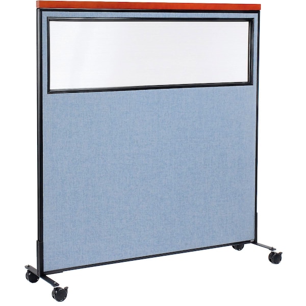 Interion Mobile Deluxe Office Partition Panel with Partial Window, 60-1/4"W x 64-1/2"H, Blue