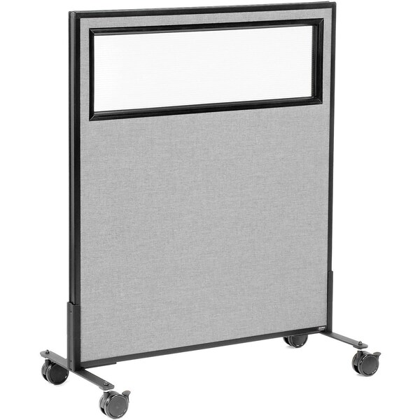 Interion Mobile Office Partition Panel with Partial Window, 36-1/4"W x 45"H, Gray