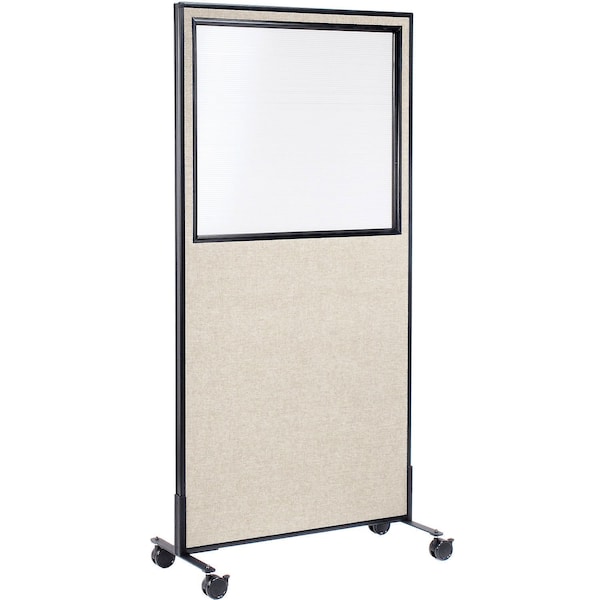 Interion Mobile Office Partition Panel with Partial Window, 36-1/4"W x 99"H, Tan