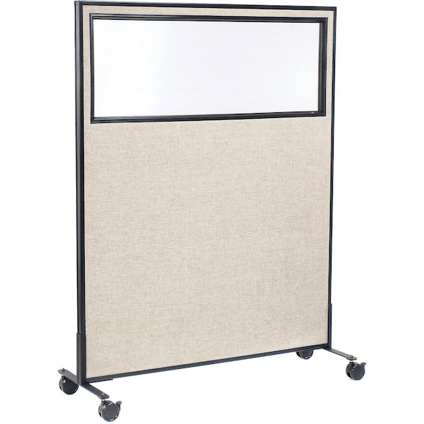 Interion Mobile Office Partition Panel with Partial Window, 48-1/4"W x 63"H, Tan