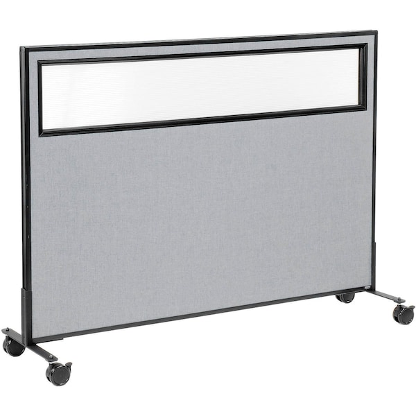 Interion Mobile Office Partition Panel with Partial Window, 60-1/4"W x 45"H, Gray