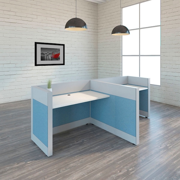 Upgrade your office space in a snap with this Interion by Global Industrial Modern Double Reception Workstation. Its modern appearance, with blue fabric panels and clean aesthetic, instantly updates your space, while its durable steel construction provides long-lasting stability. Easily customizable and engineered for organization, this kit comes with everything you need to set up your workstation, making it the ideal solution for offices in any commercial or residential setting.