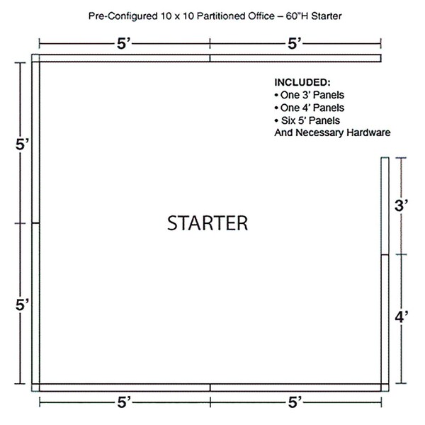 Interion Pre-Configured Office Cubicle, 10'W x 10'D x 60"H, Starter Kit, Blue