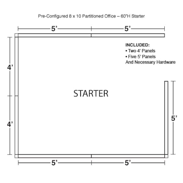 Interion Pre-Configured Partitioned Office Cubicle, 8'W x 10'D x 60"H, Starter Kit, Blue