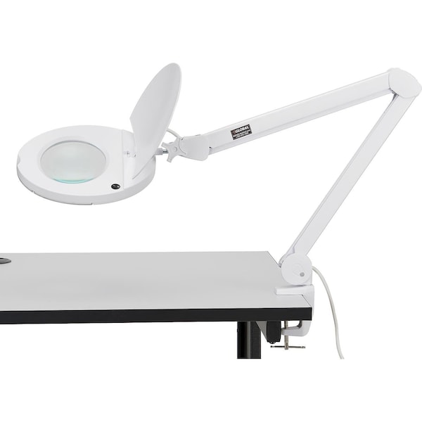 Uses 80 Ultra-efficient SMD LEDs which offer glare-free lightComes with 5 round glass lens and a hinged, dust-proof coverAdjustable swing arm is made of metal and includes an arm cover which reduces possibility of hand pinching or injuryMximum table top thickness is 2 1/2 Illuminance:1860 Lux = 1860 Lumen/m