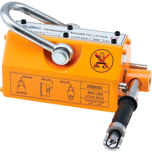 Compact designed with no assembly needed. Designed to secure workloads without required slings, clamps, or other support devices. Easy-to-use lever rotation offers convenient and efficient control. Make lifting easier in the warehouse with the power of industrial magnets. The Global Industrial™ Lifting Magnet utilizes magnetic forces to elevate steel, iron, and other materials for easy handling and transport. They are ideal for many kinds of material lifting tasks that are performed with a hoist or crane. The lightweight magnet design provides a convenient and cost-effective method of transporting ferrous material. The easy-to-use lever rotation activates and deactivates the magnetic force for convenient and efficient operation control. Magnet Size: 10-3/8in x 4-5/8in. Capacity Limit: 800 lbs.