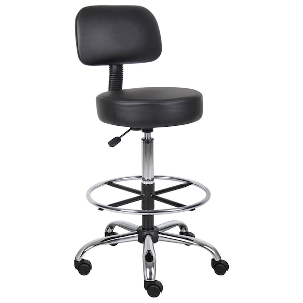 Medical/Drafting Stool with Back Cushion & Footring, Caressoft Vinyl, Black