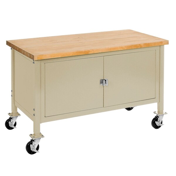 Mobile Cabinet Workbench, Maple Square Edge, 60inW x 30inD, Tan
