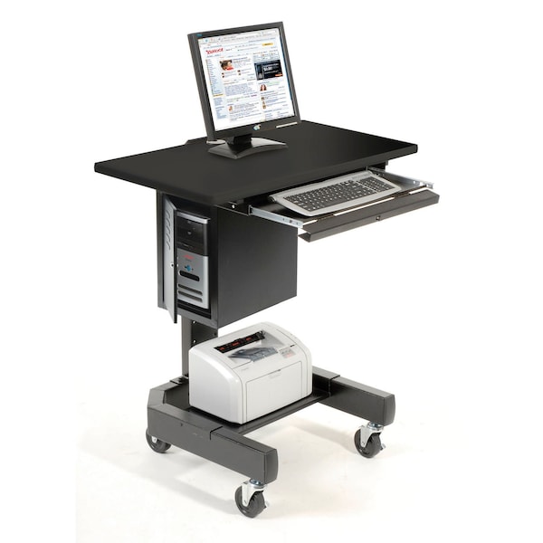 Mobile Computer Cart, 27inW x 24-1/2inD x 41inH, Black