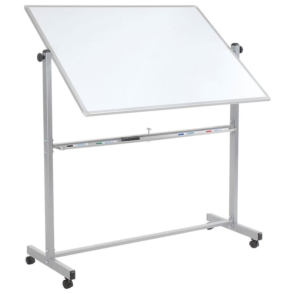 Mobile Board is easily transported from room to room to allow for continued work or room changesDual-Sided Magnetic Painted Steel surface resists staining and ghostingFull length tray keeps markers, erasers and other accessories in close reachBoard locks into place when in positionLocking casters for easy mobility and positioning