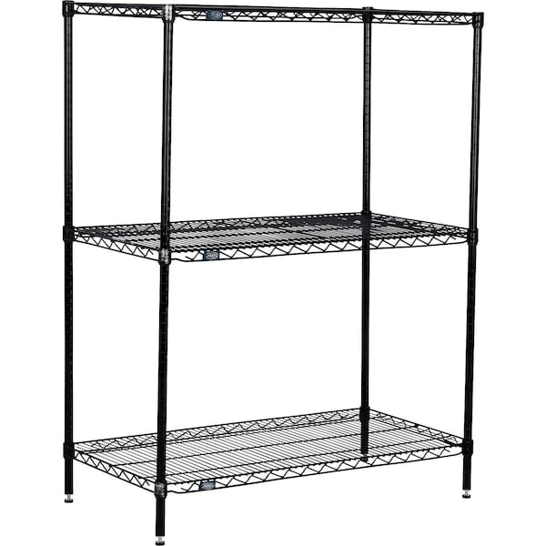 Nexel 3 Shelf, Black Epoxy Wire Shelving Unit, Starter, 48"W x 14"D x 54"H