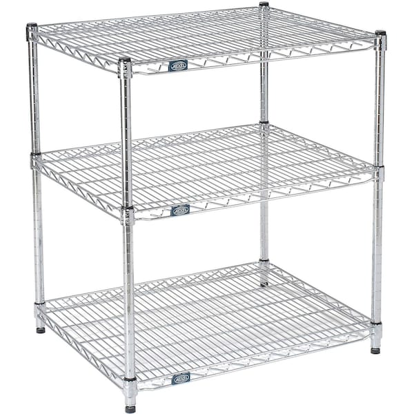 Nexel 3 Shelf, Chrome ESD Wire Shelving Unit, Starter, 72"W x 12"D x 34"H