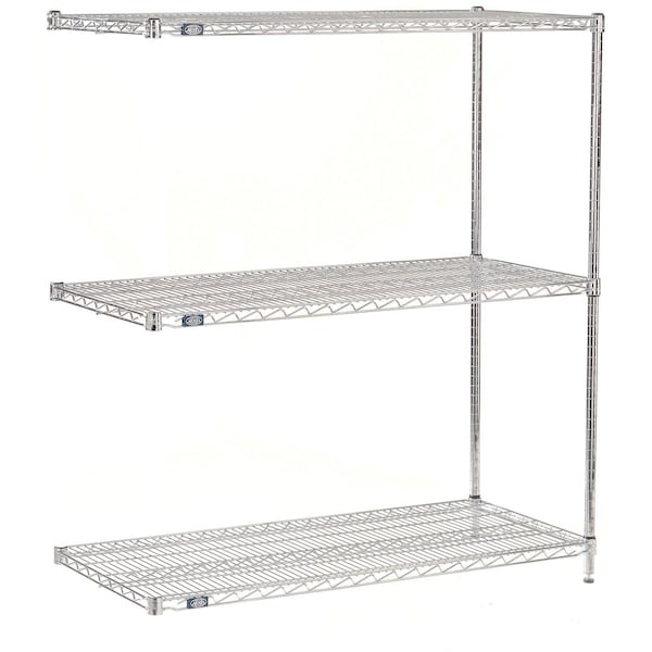 Nexel 3 Shelf, Chrome Wire Shelving Unit, Add On, 60"W x 21"D x 54"H