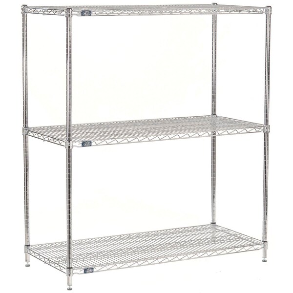 Nexel 3 Shelf, Chrome Wire Shelving Unit, Starter, 60"W x 36"D x 54"H