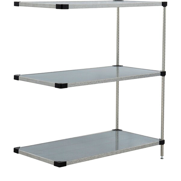 Nexel 3 Shelf, Galvanized Steel Solid Shelving Unit, Add On, 42"W x 24"D x 54"H