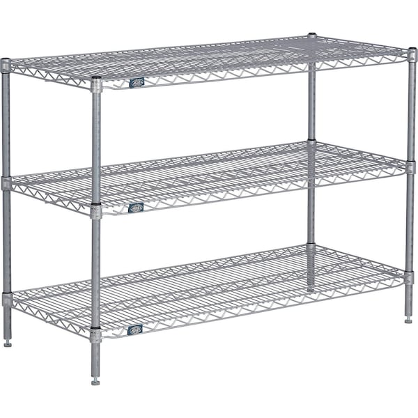 Nexel 3 Shelf, Nexelate Silver Epoxy Wire Shelving Unit, Starter, 48"W x 18"D x 34"H