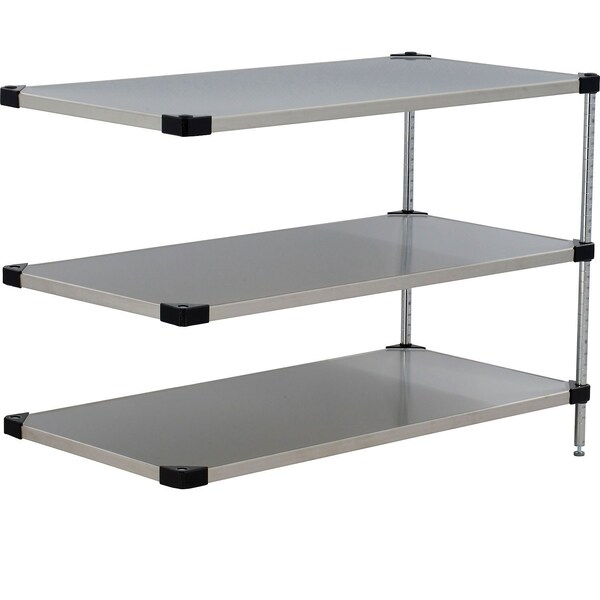 Nexel 3 Shelf, Stainless Steel Solid Shelving Unit, Add On, 48"W x 18"D x 34"H