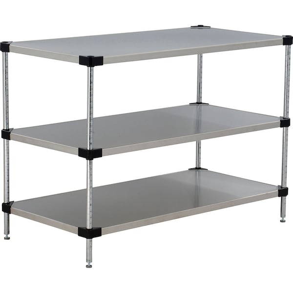 Nexel 3 Shelf, Stainless Steel Solid Shelving Unit, Starter, 48"W x 18"D x 54"H