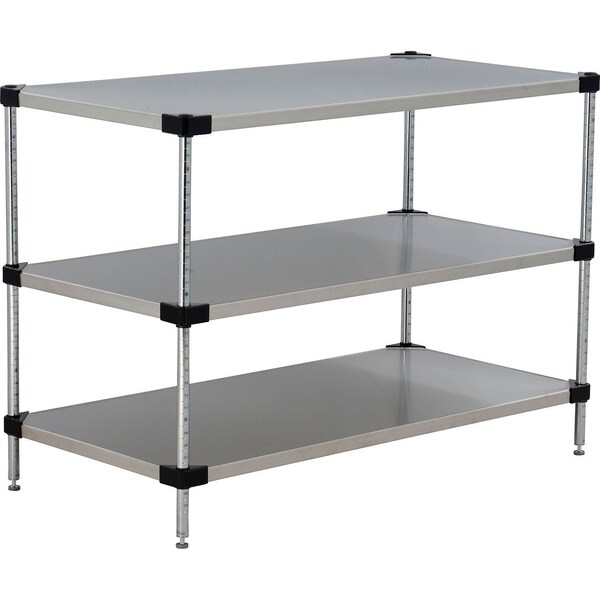 Nexel 3 Shelf, Stainless Steel Solid Shelving Unit, Starter, 48"W x 24"D x 54"H
