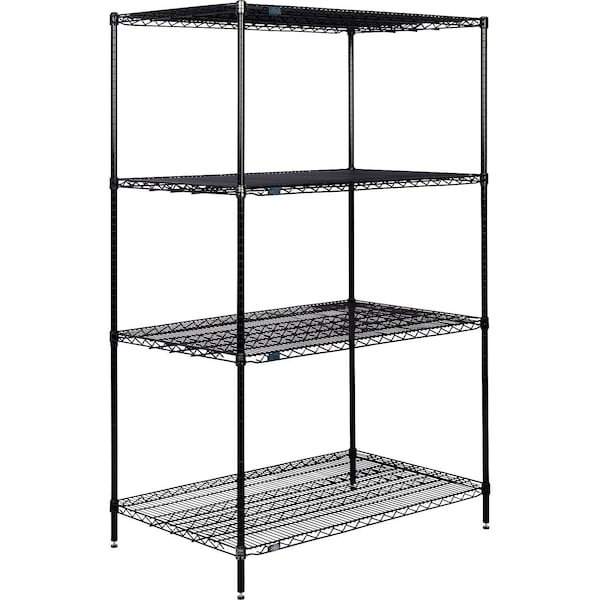 Nexel 4 Shelf, Black Epoxy Wire Shelving Unit, Starter, 36"W x 30"D x 63"H
