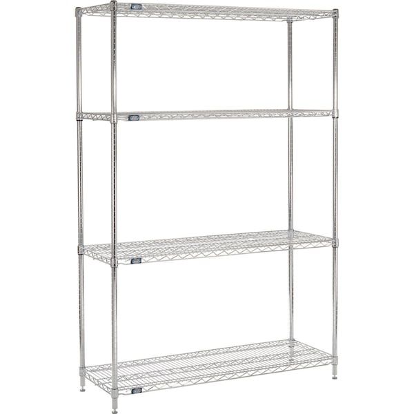 Nexel 4 Shelf, Chrome ESD Wire Shelving Unit, Starter, 72"W x 12"D x 54"H