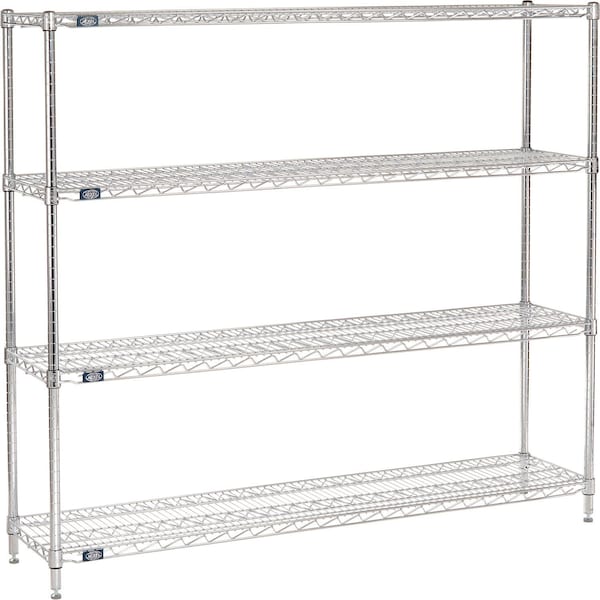 Nexel 4 Shelf, Chrome Wire Shelving Unit, Starter, 72"W x 12"D x 63"H