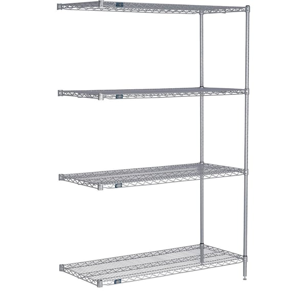 Nexel 4 Shelf, Nexelate Silver Epoxy Wire Shelving Unit, Add On, 30"W x 21"D x 63"H