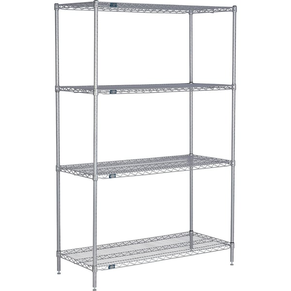 Nexel 4 Shelf, Nexelate Silver Epoxy Wire Shelving Unit, Starter, 54"W x 18"D x 54"H