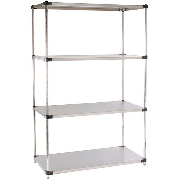 Nexel 4 Shelf, Stainless Steel Solid Shelving Unit, Starter, 36"W x 18"D x 54"H