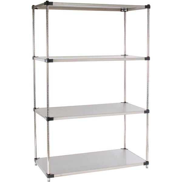 Nexel 4 Shelf, Stainless Steel Solid Shelving Unit, Starter, 48"W x 18"D x 54"H
