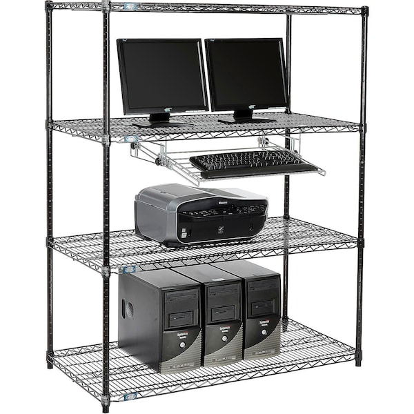 Nexel 4-Shelf Wire Computer LAN Workstation with Keyboard Tray, 48"W x 24"D x 63"H, Black
