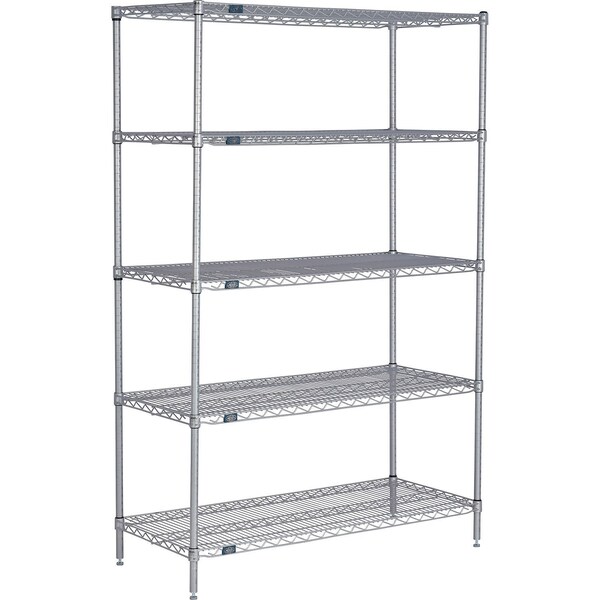 Nexel 5 Shelf, Nexelate Silver Epoxy Wire Shelving Unit, Starter, 36"W x 14"D x 74"H